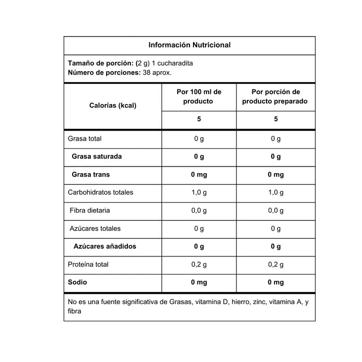Disolver (2 g), una cucharadita en 100 ml de agua caliente y mezclar bien hasta su completa disolución. Ajusta la intensidad según tu preferencia. Puede prepararlo también en leche , bebida de su elección o usarlo para preparación de postres o recetas.