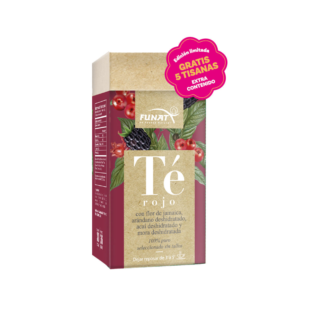 El Té Rojo Funat es una encantadora mezcla de frutos rojos con propiedades antioxidantes, además se obtiene por doble proceso de fermentación y su contenido de TÉína lo convierte en un gran estimulante