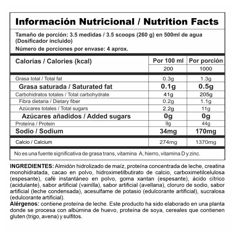 Megaplex Special Edition, es la mejor proteína hipercalórica de suero de leche con caseína, que incluye en su innovadora fórmula, 44 g de Proteína, 3.000 mg de Creatina Monohidrato, 500 mg de HMB, BCAA y 1.000 calorías por porción y fuentes de carbohidratos con diferentes velocidades de absorción. La Edición Limitada está compuesta 100% por proteínas lácteas y no contiene azúcares adicionados. Además, Incluye21% más de contenidopara que disfrutes su delicioso sabor a Cookies & Cream.